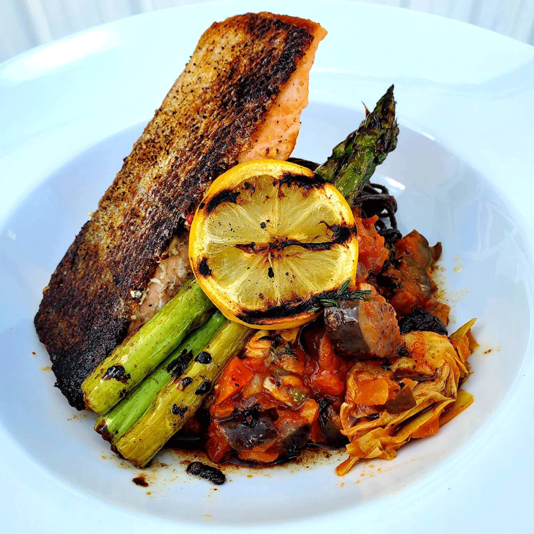 Locally inspired dishes that highlight fresh coastal seafood, seasonal farm ingredients, and wood-fire flavors
